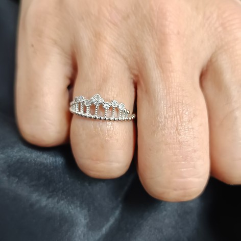 0.092 cts. Sortija Oro Blanco 18 kts. 6 diamantes talla brillante de 1.20 mm y 4 diamantes talla brillante de 1.10 mm. Calidad H-VS/SI.
