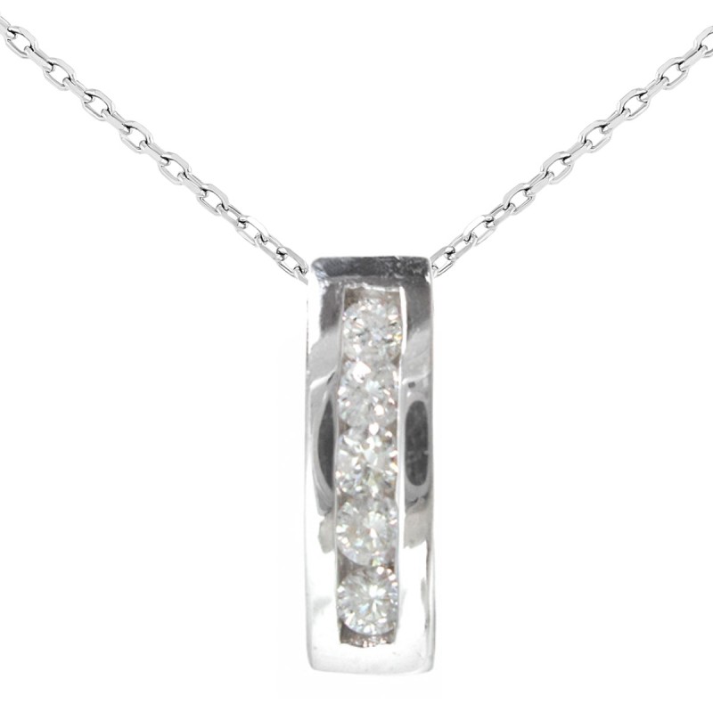 0.23 cts. Gargantilla Oro blanco 18 kts. 5 diamantes talla brillante de 2.20mm. Calidad H-VS/SI. Motivo de 13,5x4 mm. Cadena Forzada de 42-45 cm de largo con doble asa.