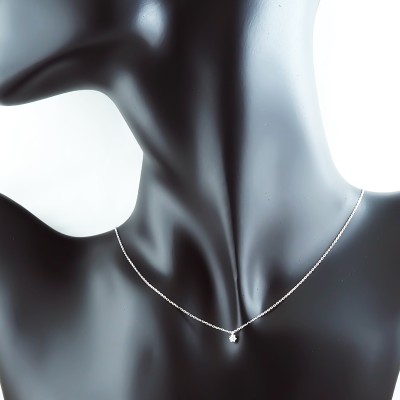 0.035 cts. Gargantilla 6 garras Oro blanco 18 kts. 1 diamante talla brillante de 2.00 mm. Calidad H-VS/SI. Cadena Forzada con doble asa a 42-45 cm de largo.