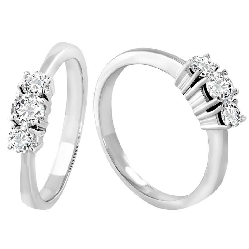 0.51 cts. Sortija oro blanco 18 kts. 2 diamantes talla brillante de 3.25mm y 1 diamante talla brillante 4.00mm. Calidad H-VS/SI