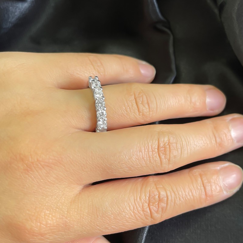 1.12 cts. Sortija oro blanco 18 kts. 7 diamantes talla brillante de 3.50mm. Calidad H-VS/SI