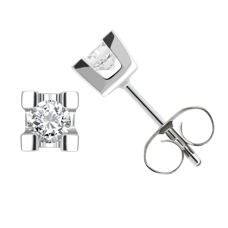 0.50 cts. Pendientes 4 garras cuadradas Oro blanco 18 kts. 2 diamantes talla brillante de 4.00mm. Calidad H-SI