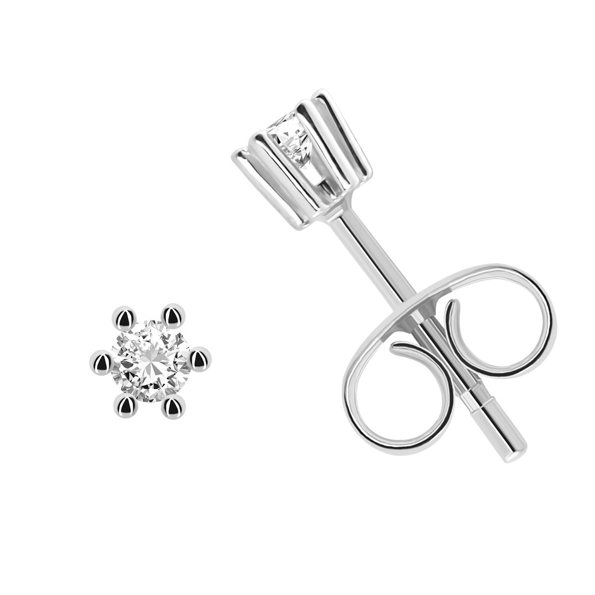 0.12 cts. Pendientes 6 garras redondas Oro blanco 18 kts. 2 diamantes talla brillante de 2.50 mm. Calidad H-VS/SI