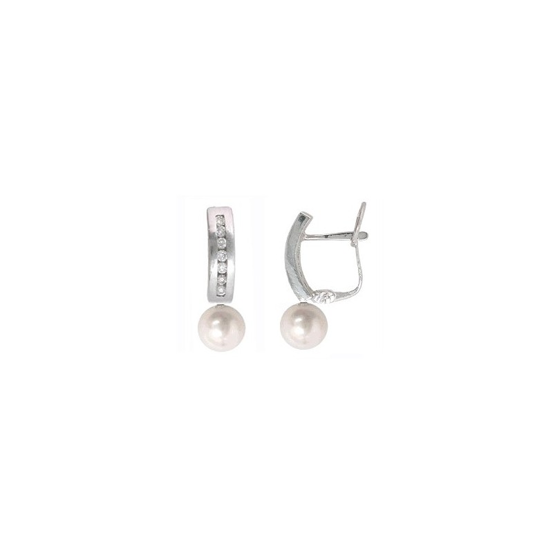 0.23 cts. Pendientes Oro Blanco 18 kts. Perlas cultivadas 6-6,5 mm y 14 diamantes talla brillante de 1.50 mm. Calidad H-VS/SI