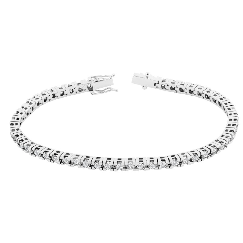 3.92 cts. Pulsera garras cuadradas Oro blanco 18 kts. 49 diamantes talla brillante 2.70mm. Calidad H-VS/SI. 18 cm