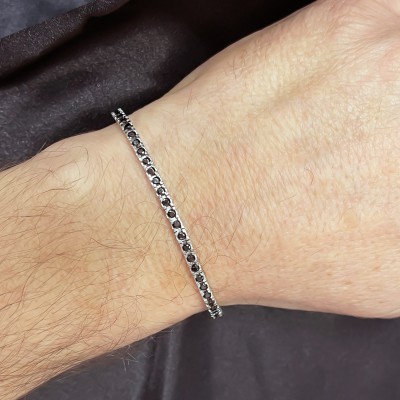 3.05 cts. Pulsera garras cuadradas Oro Blanco 18 kts. 61 Diamantes Negros talla Brillante 2.20mm. Mide 19 cm de largo aprox.