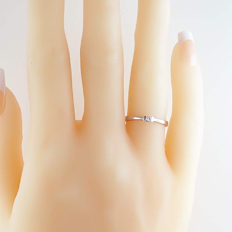 0.045 cts. Sortija Oro Blanco 18 kts. 1 diamante talla brillante de 2.20 mm. Calidad H-VS/SI