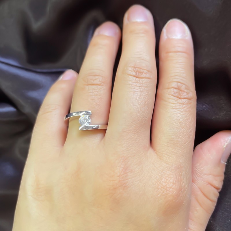 0.50 cts. Sortija Oro blanco 18 kts. 1 diamante talla brillante de 5.00mm calidad H-SI