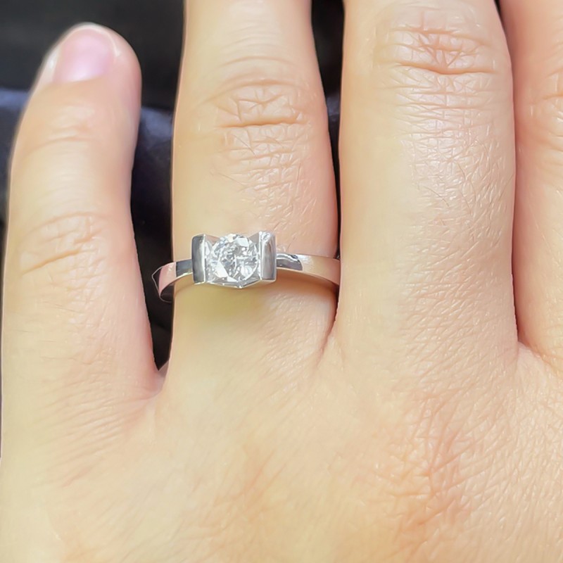 0.50 cts. Sortija Oro blanco 18 kts. 1 diamante talla brillante de 5.00mm calidad H-SI