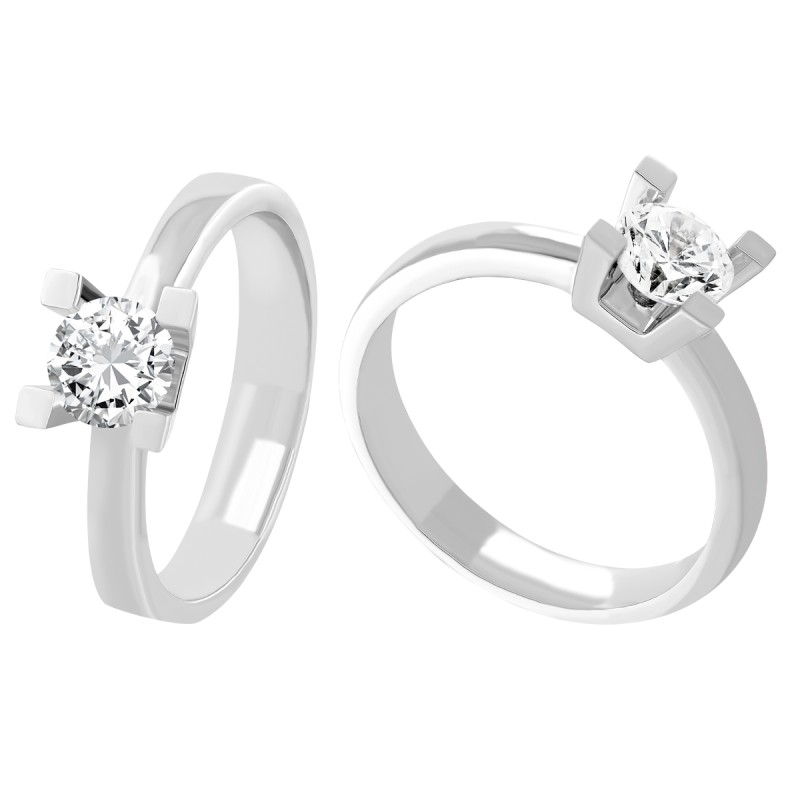 0.70 cts. Sortija Oro blanco 18 kts. 1 diamante talla brillante de 5.85mm calidad H-SI