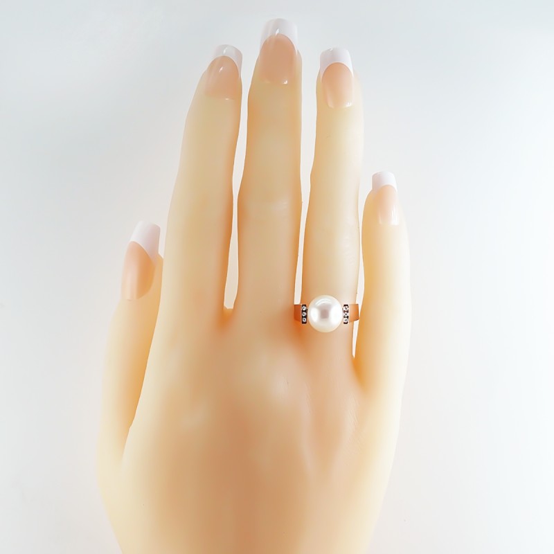 0.04 cts. Sortija Oro blanco 18 kts. Perla cultivada de 10.5-11mm y 6 diamantes talla brillante de 1.10mm. Calidad H-VS/SI